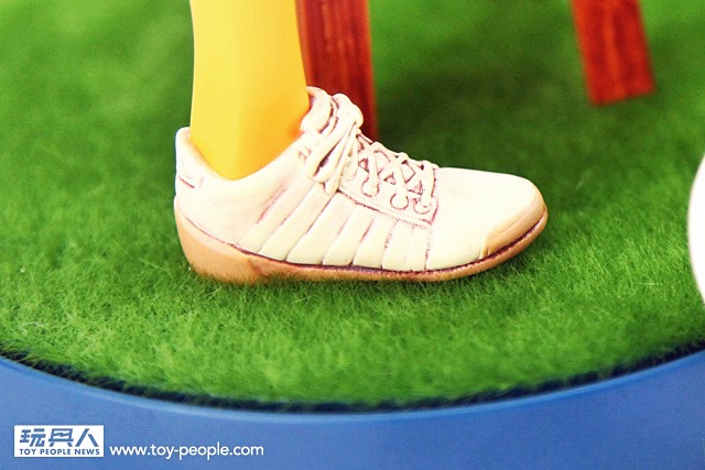 ▼ 另外,草皮地台也使用了PVC 玩偶少見的特殊材質,製作了模仿草皮的效果,效果相當地逼真,就像是真的站在操場旁加油的啦啦隊員啊~