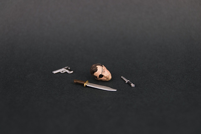 ▲可以知道配件有手槍*1、刀*2以及頭雕(瞎眼版)*1