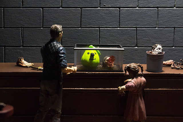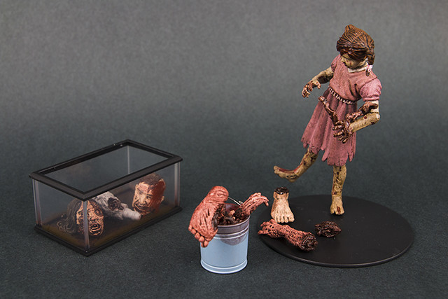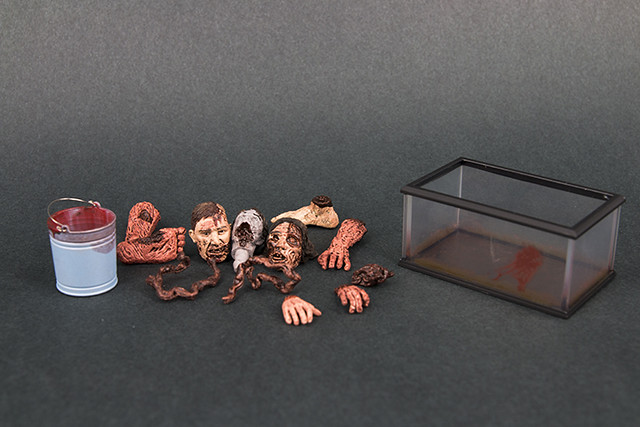 ▲但是配件真的是多到嚇死人,水桶*1、死人頭*3、腳*2、手*3、腸子*2、心臟*1以及可以裝人頭的水族箱*1