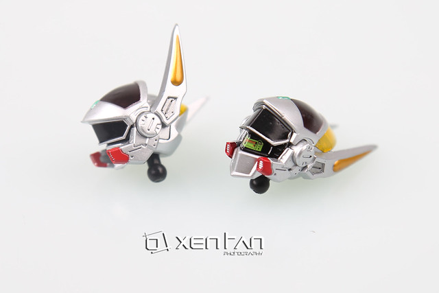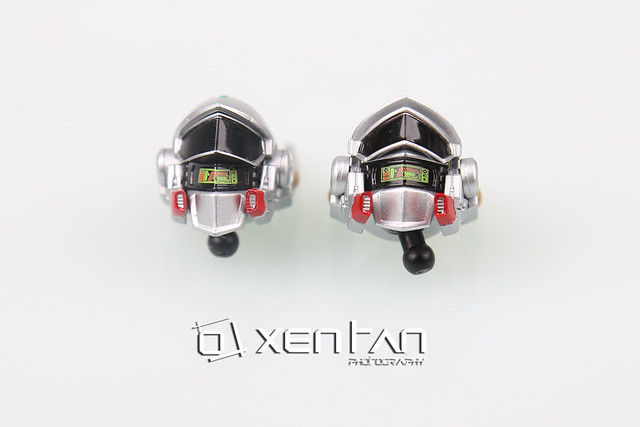 (左)裝在機車上的頭部是沒辦法開啟墨鏡部分的,(右)而機械人模式的就能開啟而且耳朵部位能上下擺動