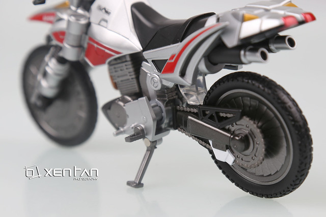 注意到後輪部位有個透明配件嗎,這是為了能支撐與鎖著後輪,感謝萬代貼心~:)