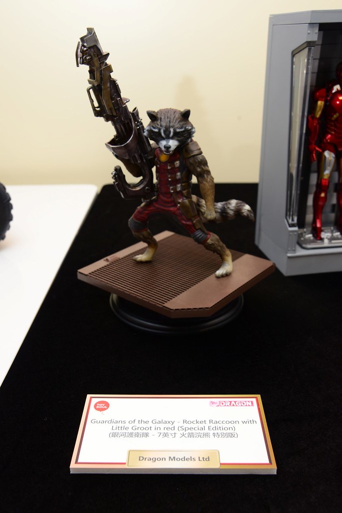 威龍:本公司「威龍」在這次在TOY SOUL 參展主題是 “超越未來” 而且還帶來多款未對外公佈的新產品,於本次展會內發佈、預訂及即場現售等,其中分別包括有「銀河護衛隊7英寸 - 火箭浣熊 全球限量版 (500盒) 即場現售」、「鐵甲奇俠3 1/9 裝甲庫系列 馬克42號) 即場預訂」、「蝙蝠俠 黑暗騎士:黎明升起1/9蝙蝠裝甲車 和 1/9蝙蝠俠 套裝 即場預訂」及「復仇者聯盟2 : 奧創紀元」等消息發佈.