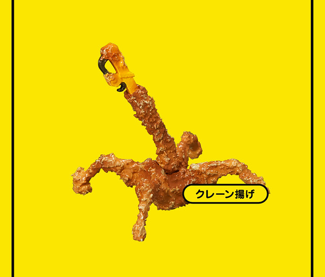 這一款名為『油炸工務店』的轉蛋系列,將我們熟悉、造型彷如海底甲殼生物的工務重機械,全部變成油炸料理啦!~ 比起第一彈油炸各種凶猛鯊魚還要更加狂野!豪邁百倍!可說是終極的超硬派男子漢料理啊~