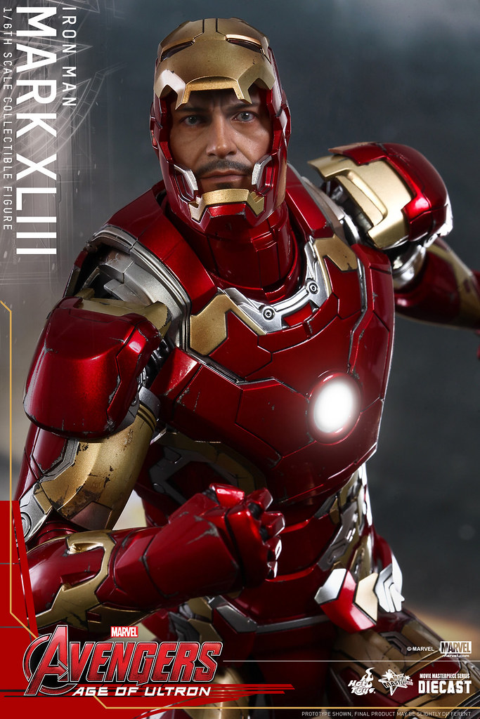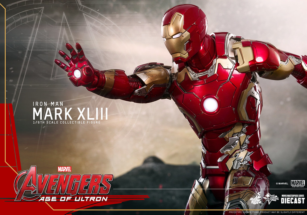 各位玩具人應該都對日前釋出的「復仇者聯盟2:奧創紀元」(Avengers: Age of Ultron)感到記憶猶新吧!而鋼鐵人最新的鋼鐵衣「馬克43」造型也同樣公開了!身為1/6 比例人偶龍頭廠商,Hot Toys 公司今天宣布將推出出自「復仇者聯盟2:奧創紀元」中,鋼鐵人最新版本裝甲,1/6 比例的鋼鐵人馬克43(Mark XLIII)作品。