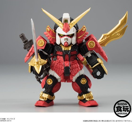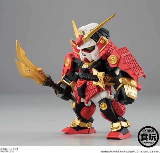 FW GUNDAM CONVERGE EX05 武者頑駄無附有刀、薙刀、種子島雷威銃、飛鷹の盾等等配件,尺寸高約有5.5公分,售價約1,400元日幣,提供給喜歡Gundam 鋼彈(機動戰士)的玩具人參考。