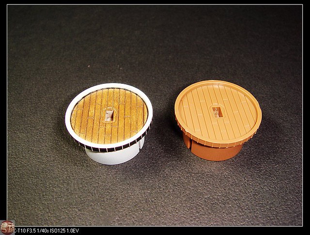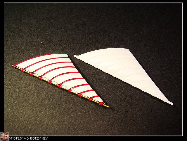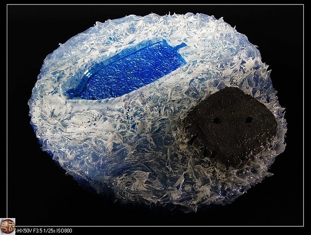 做一個簡單的場景並不難 但卻可以襯托模型的豐富性 用一個厚珍珠版上藍色底漆 上面塗上一層美術用的透明凝膠 用手指推出海浪的型狀 乾燥後用白色顏料在表面上刷出浪花 最後在噴上一層亮光漆增加海水反光的效果 這樣就是一個簡單的海景