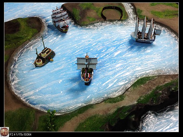 2013年製作的台江內海古地圖場景 交件前把GRAND SHIP系列海賊船擺入江中… 製造海戰的氣氛 意外發現此場景跟海軍本部的結構類似 突然有種營救艾斯的感覺
