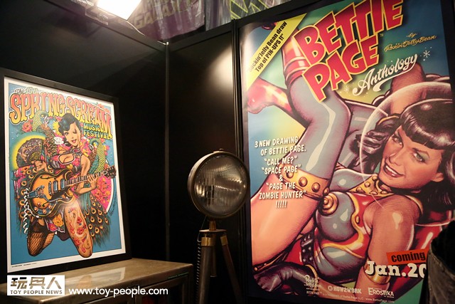 此外,還有009 與愛因斯坦的搪膠公仔、畢奇最新的原型作品展覽以及多樣知名情色藝術家Rockin’Jelly Bean 的海報與周邊商品呢!最酷的是龍家昇老師、009 的設計師、畢奇、Kila 等設計師會不定時出沒在E13-E16 攤位幫大家畫美美的作品喔!各位玩具人快點手刀到「How2Work」的攤位吧!