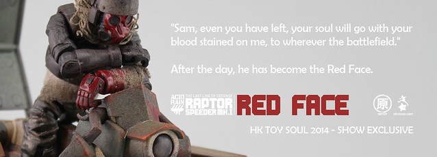 原品玩具:會的. 我們會推出TOYSOUL限定發售的特別版產品. 該特別版是我們特意找來ACID RAIN系列的原創人KIT LAU 人手再加工製作的, 所以數量非常有限. 而且, 於過去一年, 我們為了宣傳ACIDRAIN而製作的TOYFAIR EXCLUSIVE綠兵亦會同時於TOYSOUL發售, 希望各位酸雨迷不要錯過.