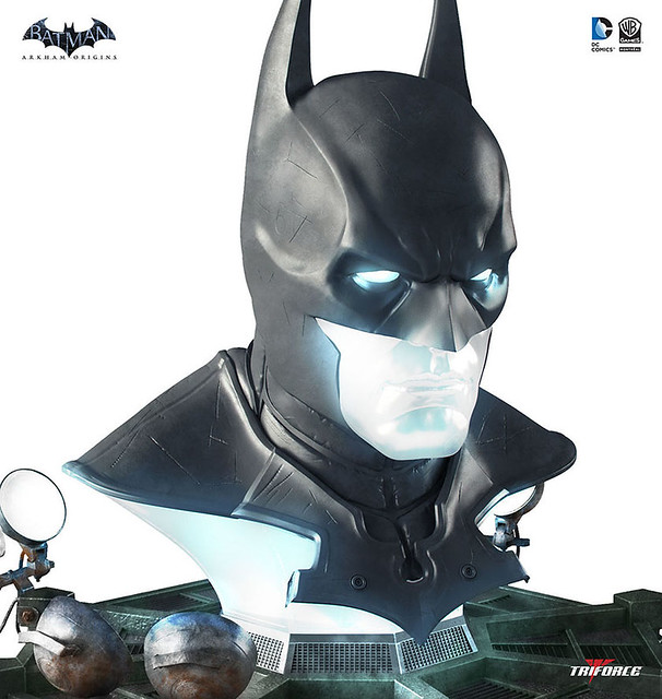 「要征服恐懼,你必須要先成為恐懼」。蝙蝠俠的面罩不只是掩飾身份、或作為防護裝甲,同時也是他克服內心恐懼,化身成為暴徒的惡夢象徵。近日TRIFORCE特別推出一款超酷的蝙蝠俠面罩蒐藏品,採用了電玩遊戲「蝙蝠俠:阿卡漢起源(Arkham Origins)」中的蝙蝠俠造型與美術風格去設計,面罩本身就很酷了,但是發光的蝙蝠俠胸像讓它看起來更酷炫!另外以蝙蝠俠基地視覺風格所設計的陳列台座也是一絕,充滿科幻、黑暗、奇幻的風格,絕對是蝙蝠俠迷不能錯過的優異蒐藏!