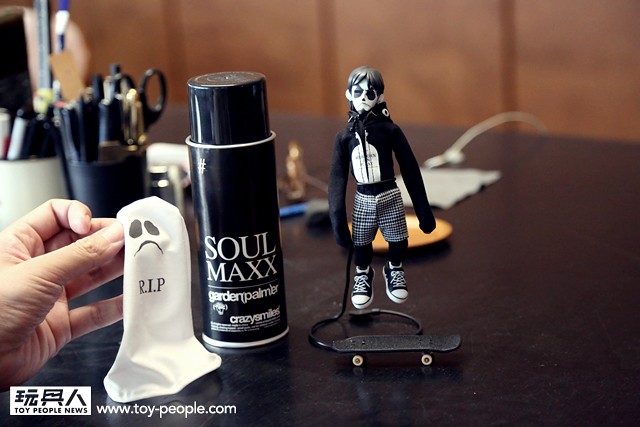「SOUL MAXX」作品有著鬼臉的MAXX,搭上特色的連帽外套,拉鍊還可拉至最頂部,讓MAXX 呈現出戴面具的風格。此外,還有附上一個白色幽靈外罩,在外罩底部還有藏一圈鐵絲。搭配著特製的腳架完全可以展示出SOUL MAXX 飄在空中的感覺!特別值得一提是,這款「SOUL MAXX」作還有多附贈一個黑色的小滑板喔!