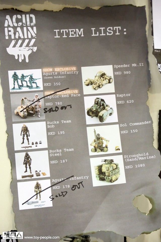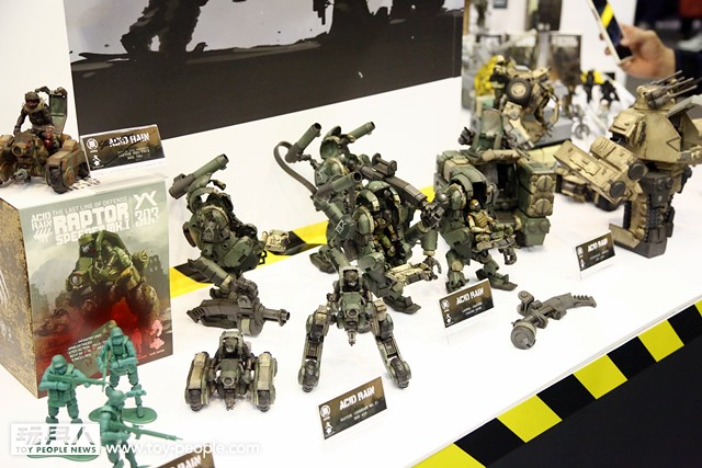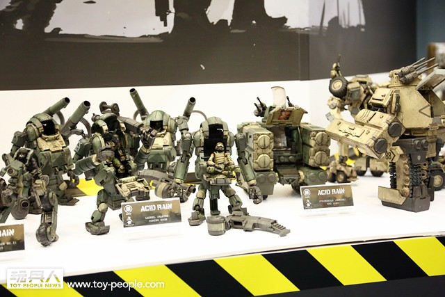 為了讓這個經典的品牌推廣給更多的玩具人們,「Acid Rain」的發行公司「ORI TOY 原品玩具」也有來今年的「TOY SOUL 2014」展覽會場報到,在會場E09 攤位展出了許多過去Acid Rain 所推出的作品,當然原型作品也是不會少的啦!多款新的兵種與載具原型作品也有展出喔!各位玩具人可以藉著這次的機會,來認識與了解這一個超厲害的科幻軍武品牌。