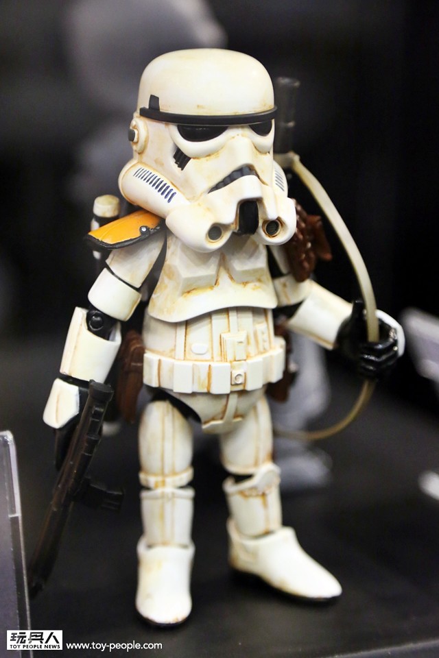 擅長製作Q 版可動合金作品的HEROCROSS 公司在推出了經典的MARVEL 系列與DISNEY 系列作品之後,在今年強勢的「TOY SOUL 2014」展覽D09、D11 攤位中,展出許多超令人期待的原型商品。繼日前發佈Hybrid Metal Figuration 系列最新的「星際大戰」系列波巴‧費特角色之後,這次在會場有展出沙漠風暴兵、C3PO 與R2D2 的原型作品。