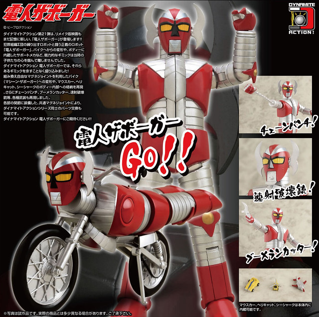 Dynamite Action!可動系列標榜著「磁石關節」技術,以金屬球體與磁鐵相連接而成的關節部位可以讓活動度更加提升,讓可動性與造型之間抓到更佳的平衡點,這次以特攝劇戰鬥電人Zaborgar當中主要角色電人Zaborgar Dynamite Action!可動化,附有劇中出現的飛行機等等機體,也可以利用配件變化成機車型態,尺寸全高約17公分,售價約21,000元日幣,提供給喜歡電人Zaborgar的玩具人參考。