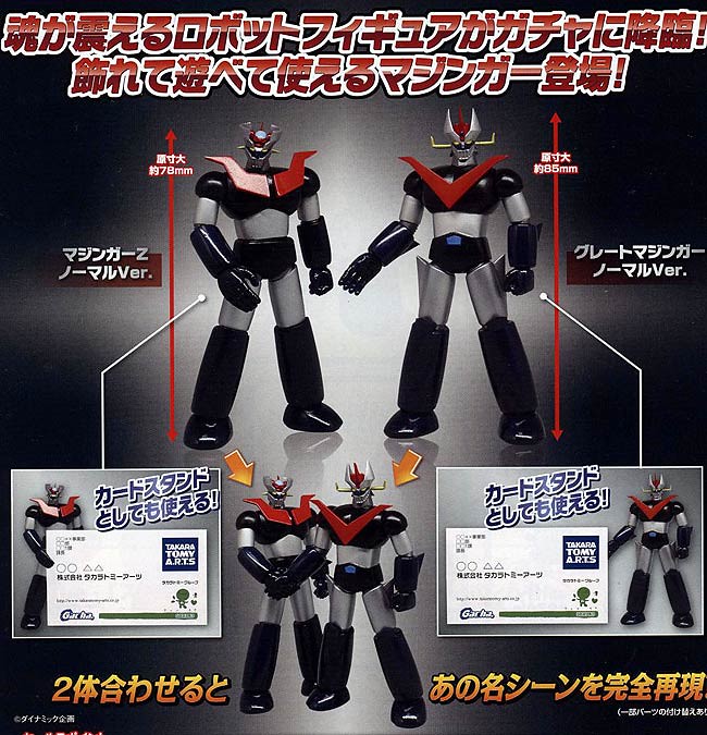 機能性轉蛋正夯!~ 現在轉蛋市場流行了一股結合公仔與機能性的桌上小物轉蛋風潮,Takara Tomy 知名的轉蛋品牌「T-Arts」將推出以經典熱血機器人『無敵鐵金剛』(マジンガーZ)為主題的轉蛋系列!