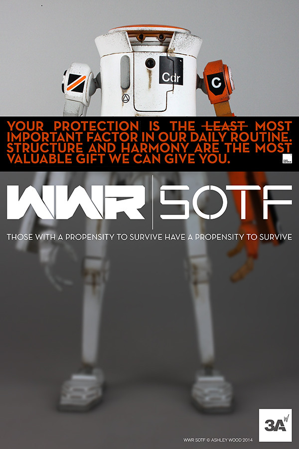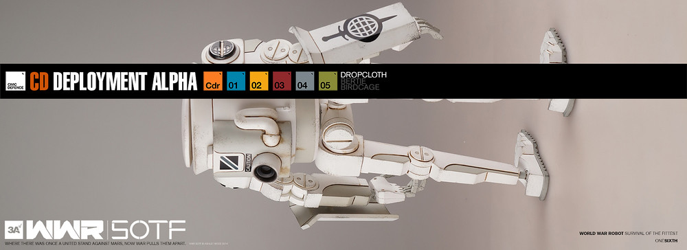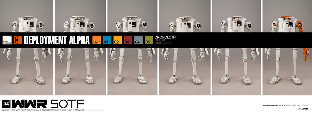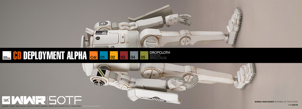 threeA 公司在12 月29 日時,發售了兩款WWR SOTF 系列的BERTIE MK2 1/6 比例作品,CIVIC DEFENCE BERTIE MK2 的橘白配色的機器人與新機器人角色MULE REV 3。在WWR SOTF 的CIVIC DEFENCE 系列除了有發售這兩款作品之外,也將在2014 年的最後一天12 月31 日推出早先公佈的Dropcloth 1.5 1/6 比例機器人。有興趣的玩具人請千萬不要錯過了!