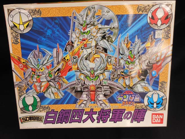 限定版白鋼四大將軍之陣,這是以番外篇方式登場的外傳故事。四大將軍以閃到讓人眼睛睜不開的「白鋼」版本重新出來串個場,為飛天和大牙超將軍兩個人加持灌頂一下,順便推出鋼普拉。很有誠意的是,這一組不但有大量電鍍零件,同時還附了原創漫畫以及家紋貼紙。「白鋼」這個概念後來也運用在《七人超將軍篇》的其它角色。