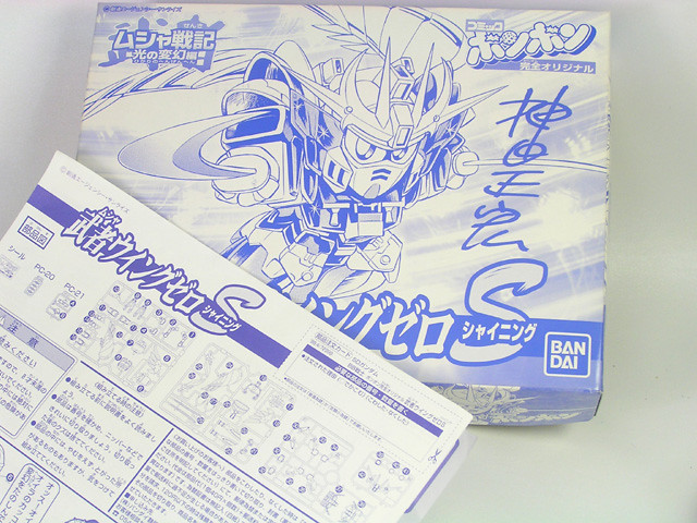 《Comic bom bom》漫畫應募限定品,《武者戰記 光之變幻編》的主角武者飛翼零式,單色版外盒封面上還有作者神田正宏老師的簽名加持。透明零件版本,武者飛翼零式的名字後面加了一個S,S是指Shining,也就是亮晶晶的意思。
