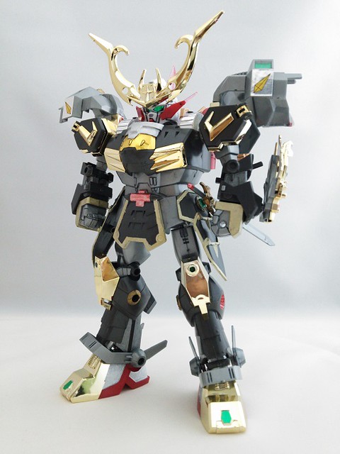 順道一提,在這一集之中,金光閃閃的武者鋼彈MK II也輒了一角。不過,如果以MG 的尺寸來說,這個是不是大到有點誇張了啊?該不會是... 全自製?