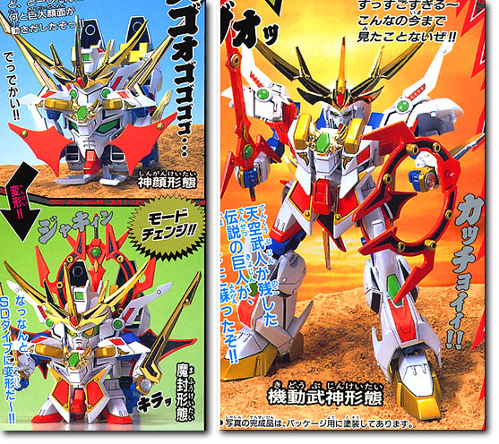 夠進行變形、分離、合體的超級機器人,一向是男人無法抗拒的浪漫夢想。在鋼彈正史世界中,為了追求寫實合理性,在變形機構上的設計比較嚴謹,相對之下,比較少有過於誇張的變形機構。然而,在SD鋼彈的世界中,所有的規則都不存在,一切的不可思議都是可以接受的。
