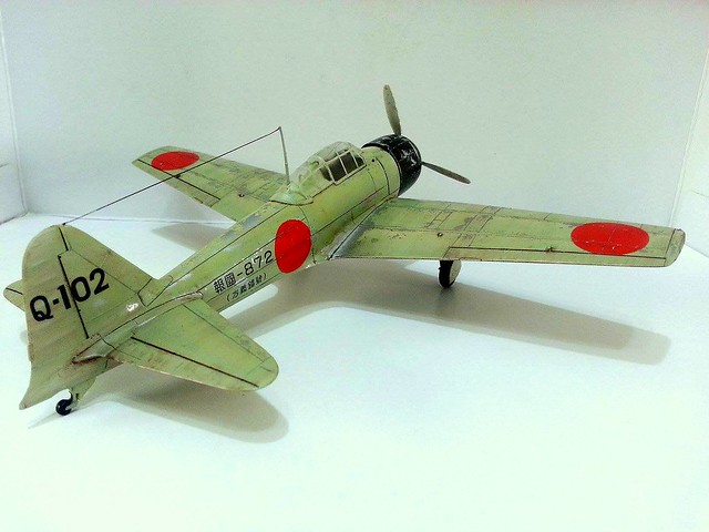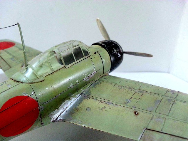 頭殼壞壞好久沒投稿了。因為近期的作品都沒有很滿意所以停了一陣子。這次的作品是日本有名的” 零式艦上戰鬥機”,也就是我們常聽到了”零戰”。這次用的是TAMIYA 1982年出產的1/48 零戰三二型,雖是頭殼壞懷2歲時出的產品…TAMIYA就是TAMIYA密合度真不賴,組裝上沒什麼問題~~除了凸線…..