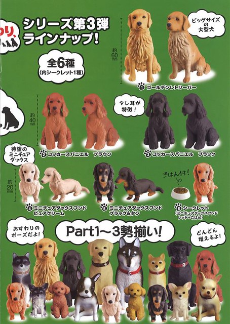 家裡有隻壞狗狗的主人看到這系列恐怕會流淚吧?以乖狗狗排排坐為賣點的轉蛋企畫「坐下!等等!」系列將在4月於日本推出第3彈。按照往例會收錄大、中、小型犬三類。這次登場的大型犬是黃金獵犬,另外還有中型犬「科卡」(棕色、黑色兩款)以及小型臘腸狗(米色、黑與棕色三種)共6款,加上前面2彈入手排排站在電腦螢幕前,真的好熱鬧好療癒啊!提供給大家參考唷!