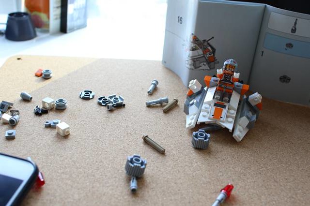 能同時買下可愛的AT-AT和 駕駛員,真的令我非常心動~~打開後,同樣見到兩包零件 和一份說明書。由於這款只有88件磚塊,過程很快