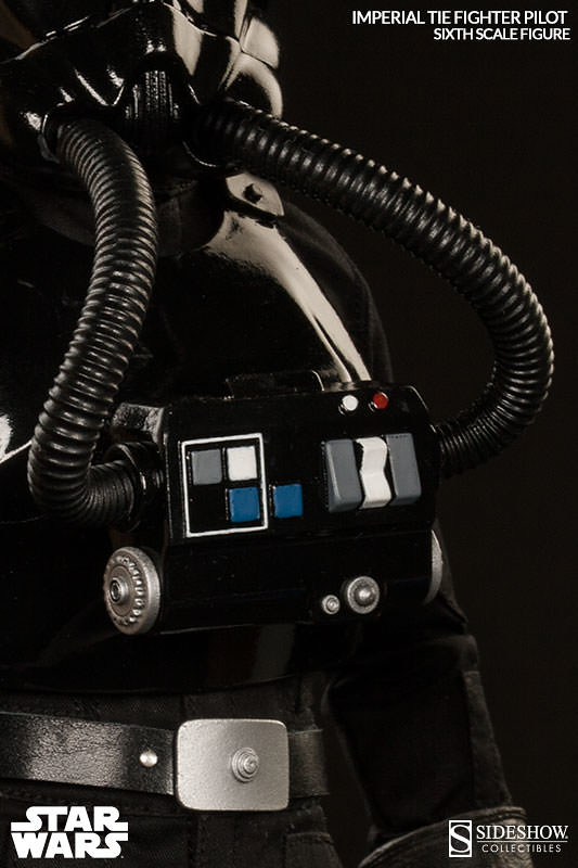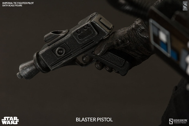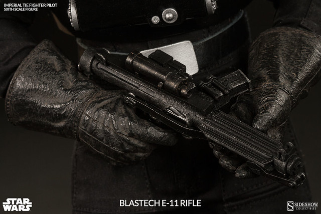 這次由Sideshow 所推出的這一款作品,極度考究地重現了鈦戰機駕駛員在電影原作中的造型,包含制服、頭盔以及維生器。並且配有一把帝國士兵標準配備的E-11 雷射步槍”(E-11 blaster)。