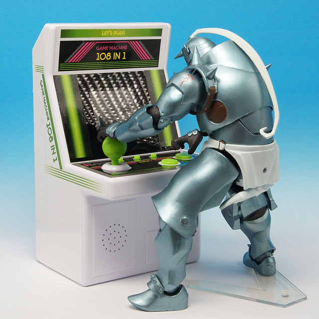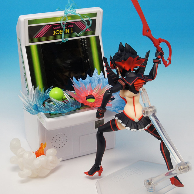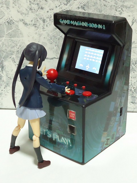 日本一家景品玩家公司,推出了對應figma 人偶尺寸,實際可完108 種遊戲的街機模型「108 in 1 街機遊戲機」(108 in 1 アーケード筐体型ゲーム機)。這一款作品將電玩店的大型機台模型化,製作成適合熱門的可動人形系列,figma 的人偶尺寸比例來製作,內建了液晶銀幕,使用3顆3號電池即可動作,內建了108 種小遊戲,不但能夠當作figma 人偶配件,還兼具遊玩效果,樂趣十足啊!~