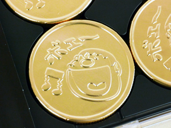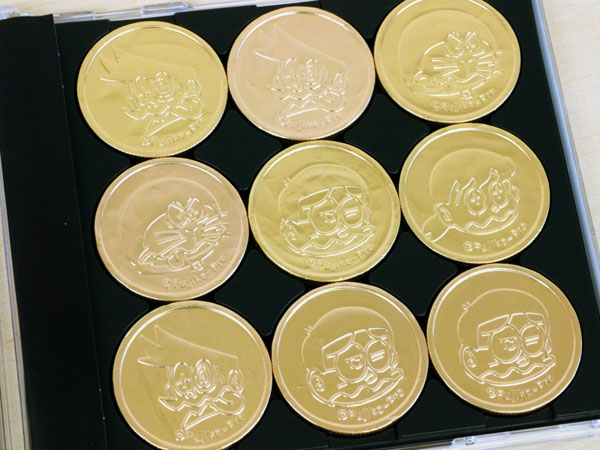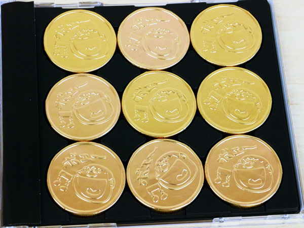 ↓把金幣包裝拆開來的模樣。裡頭全部一樣有著正反面的金幣浮雕。