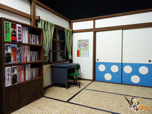 首先利用網路資源找到大雄房間的平面圖並了解房間擺設與面積,再來重現房間最重要的是比例問題。比例錯誤那再精緻的模型房間都不會好看