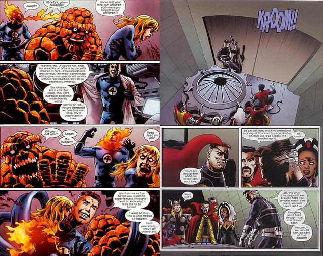 結果反抗軍被咬到的人越來越多,李德這時居然因為子女的死亡,發瘋到認為變成活死人是一種進化,強制將驚奇四超人全變成活死人。於是神盾的天空戰艦就被裡應外合攻破了,尼克說到不能讓其他世界遭殃,要索爾摧毀裝置。最後裝置被摧毀了,可是殘存英雄也全變成活死人,活死人李德說要找能到去其他世界的誘餌,於是故事就緊接著 Ultimate Fantastic Four 第 21 回。