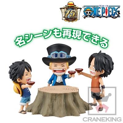 ONE PIECE海賊王 WCF(World Collectable Figure)系列預計2015年2月推出ONE PIECE ワールドコレクタブルフィギュア-HISTORY OF SABO- 薩波歷史篇章(暫時翻譯),收錄有小時候童年時期的魯夫、艾斯和薩波和成年版薩波、可亞拉等等約有6種類角色人物+一款樹桌子場景,單個尺寸高約有7公分,童年時期的尺寸較小,整套售價約7,450元日幣,提供給喜歡ONE PIECE海賊王的玩具人參考。