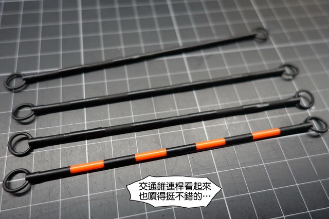 PS.一盒裡其實只有兩個交通錐和兩支連桿,我是因為買了兩盒,把另一盒的零件拆下一併噴漆處理…不要看完我的開箱文跑去跟老闆吵說少零件哦…