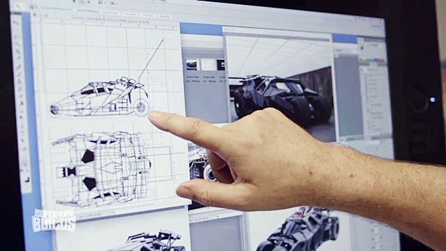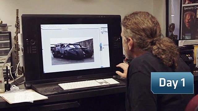 ▼ 開始製作第一天:Tim 先研究了大量的電影原作蝙蝠車造型。
