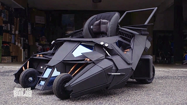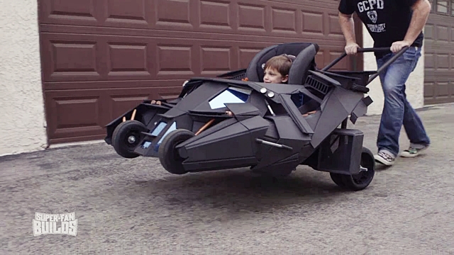 AWEme 其中一個節目“SUPER-FAN BUILDS”,請到了專業的好萊塢特效團隊“Tim Baker Creations”,為某作品的忠實粉絲,打造一款結合生活化物品的獨特、終極收藏。最新一集的“SUPER-FAN BUILDS”,為一位死忠的蝙蝠俠迷“Josh Earl”製作了一款發想自《黑暗騎士》的蝙蝠車造型『蝙蝠嬰兒車』(Batmobile Baby Stroller)~