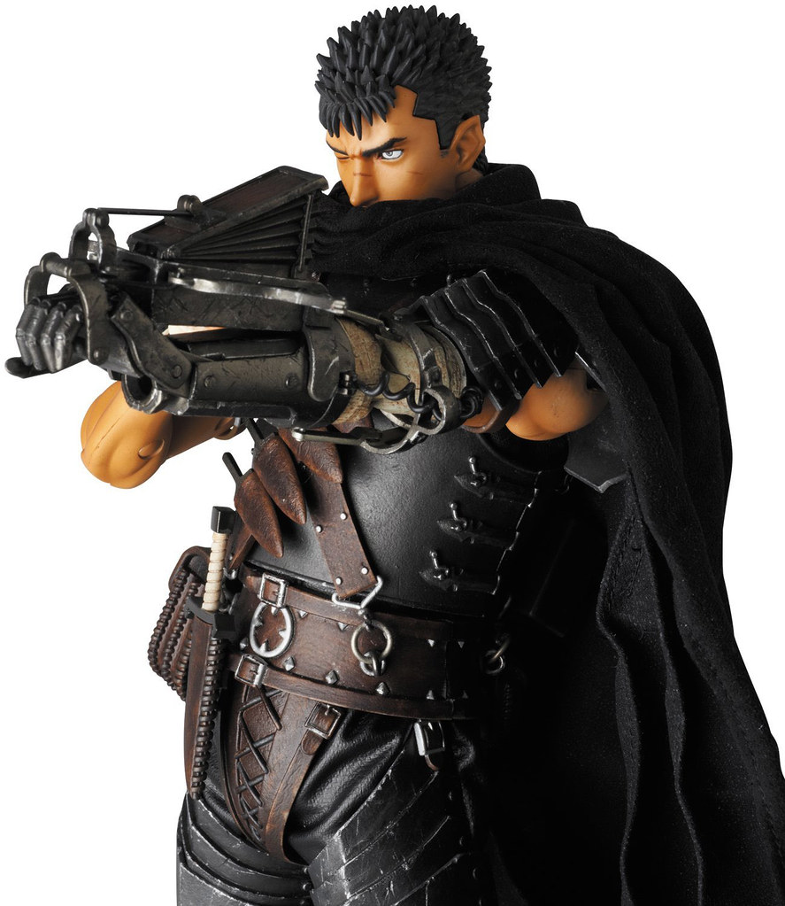 這次的作品,RAH 《烙印勇士》系列第二彈「凱茲 黑衣劍士Ver.」,脖子後方將重現原作中的造型,並搭配了具備可動眼效果的冷酷神情的頭雕,以及激烈戰鬥時的奮力神情頭雕兩種可供替換。武器則是搭配了凱茲的招牌武器『屠龍大劍』(ドラゴンころし),能夠呈現凱茲魄力十足的戰鬥姿態。