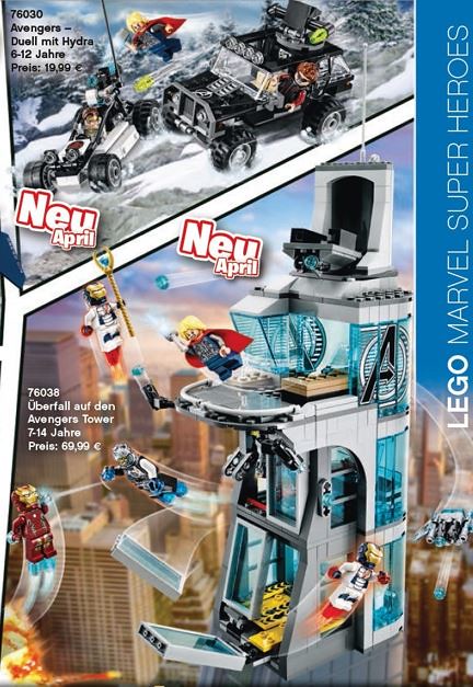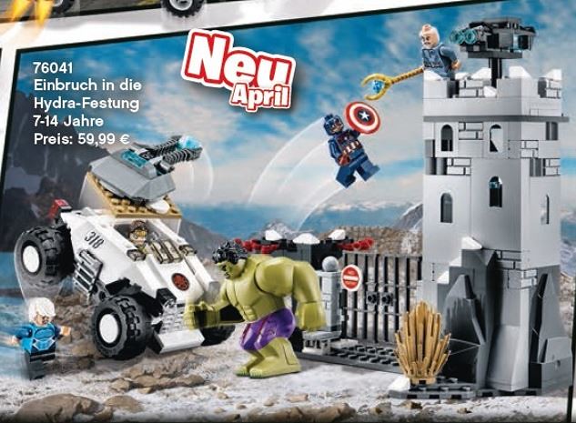 76029 Iron Man vs Ultron(14.99歐元)、76030 Hydra Showdown(19.99歐元)、76031 Hulkbuster Smash(34.99歐元)、76032 Quinjet City Chase(79.99歐元)、76038 Attack on Avengers Tower(69.99歐元)以及 76041 Raid at the Hydra Fortress(59.99歐元)