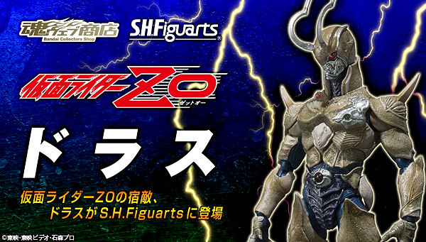 日Bandai萬代玩具公司的S.H.Figuarts可動系列在去年12月推出假面騎士ZO後,當然也要推出他的宿敵ドラス 德拉斯,仮面ライダーZO(假面騎士ZO)是東映和BANDAI初次攜手合作的作品,也是假面騎士誕生20週年的紀念之作,所以這部作品的假面騎士被取名為ZO。