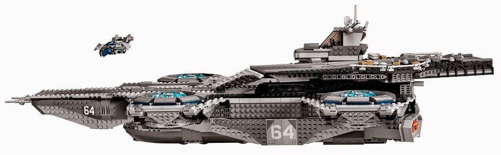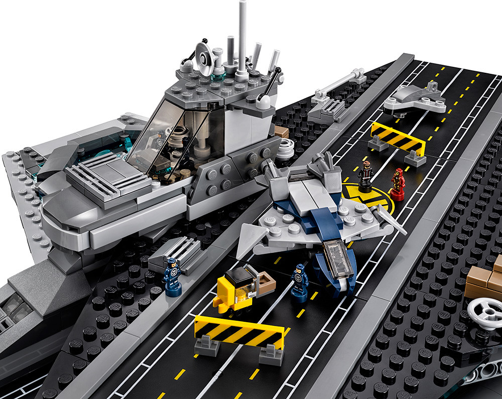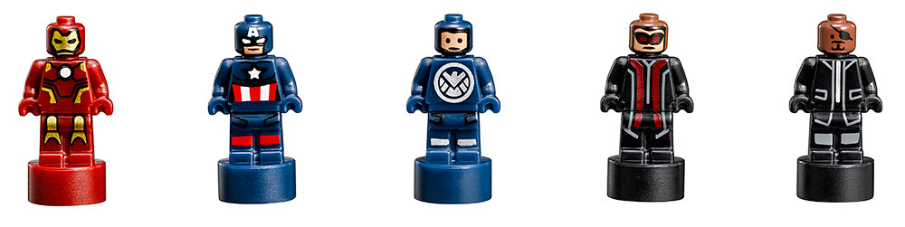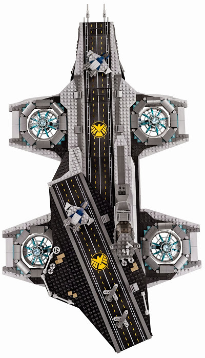 LEGO® 最新公佈的2015 年超強打的MARVEL SUPER HEROES 系列作品,編號76042 的「神盾局空中航空母艦總部」。這款全新設計的microfigures 的比例,因為本身在電影中的尺寸過於巨大,所以是與一般的LEGO® 人偶不同的比例來呈現。因此,LEGO® 公司特別設計了五款全新的microfigures:尼克福瑞、鷹眼、美國隊長、鋼鐵人與八款的神盾局特工。而在空中航空母艦上的載具也採用了microscale 比例設計了垂直升降飛船(Quinjets)、戰鬥機(fighter jets)、油罐車(gasoline truck)、堆高機(forklift trucks)等極小型的載具。