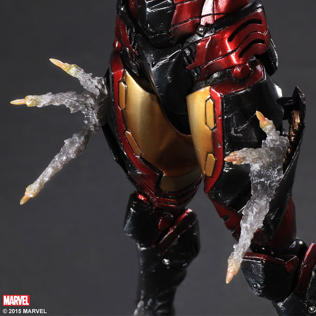 「Play Arts 改」“變體版”(VARIANT/ヴァリアント)系列,集合了設計師、原型師與技術人員,以原始造型為基礎,打造出屬於「PLAY ARTS改」風格的全新作品。這次的“鋼鐵人”變體版(ヴァリアント),將造型修飾為更加流暢的身體線條,並在特徵配色的紅與金,追加了黑色,更加地強化了形象。