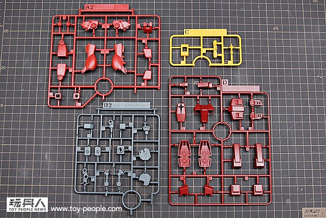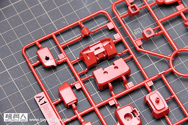 ▼ 依舊是本體的部分,可以特別注意A2跟D框架,這可是兩種不同的紅色。過去,因為生產技術受到侷限,經常利用貼紙來補色。但是,最近大家是否有發現到要貼紙的數量越來越少了呢!那是因為萬代的分件也越作越仔細啦。這樣大家不僅比較省工,而且鋼普拉也更精美跟符合動畫設定。