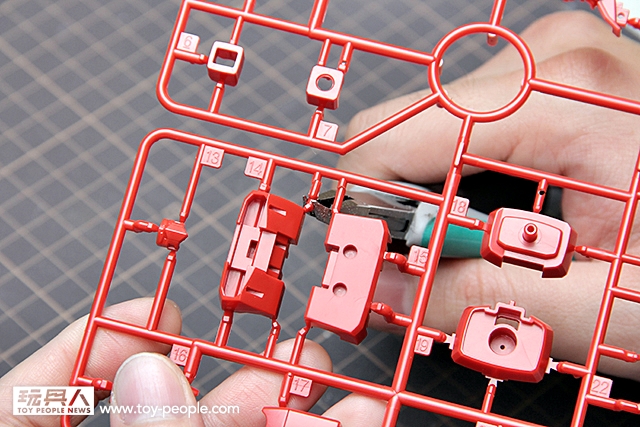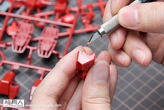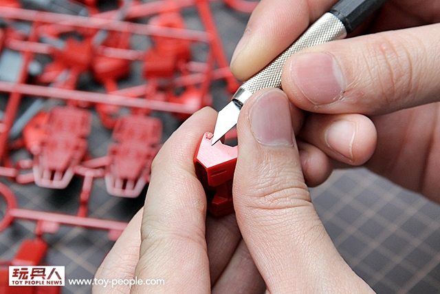 ▼ 看到零件,你想到要怎樣把它取下來了嗎?用手轉下來還是要用工具呢?像HG以上等級的套件,因為湯口比較大,所以千萬不要用轉的阿~。不然轉零件的螺旋力,可是會天元突破般的鑽進去你的零件中,造成強大的白化或是凹陷阿!