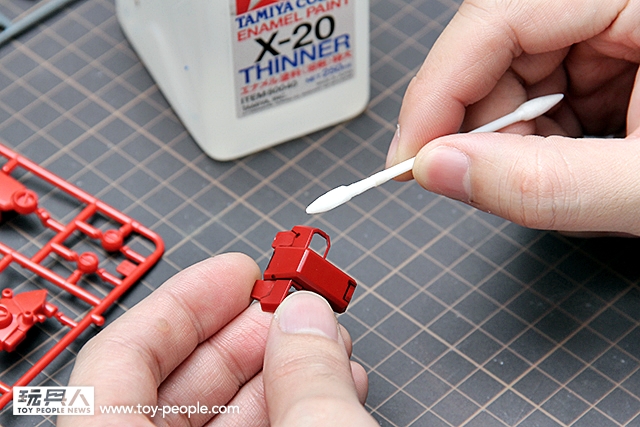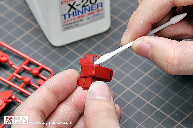 ▼ 當然墨線液也會多出一些在零件上多畫的部分,我們就要用棉花棒吸取些許墨線擦拭液,針對多畫的部分來擦拭。