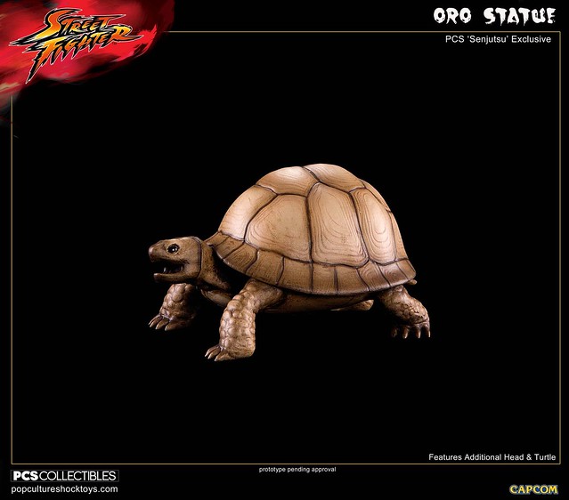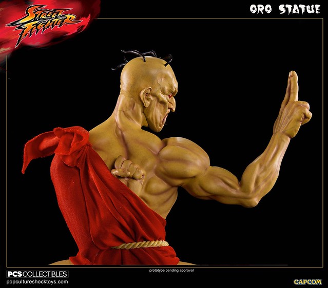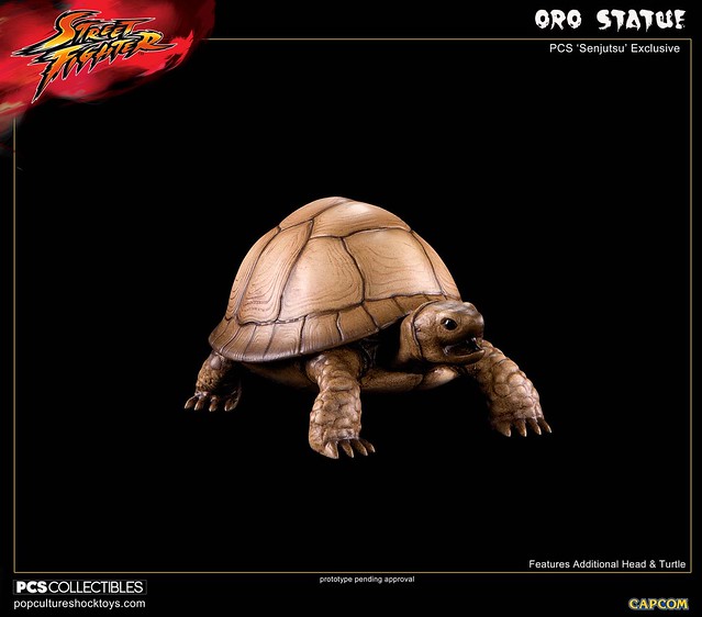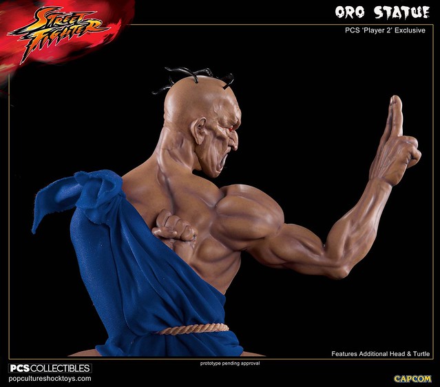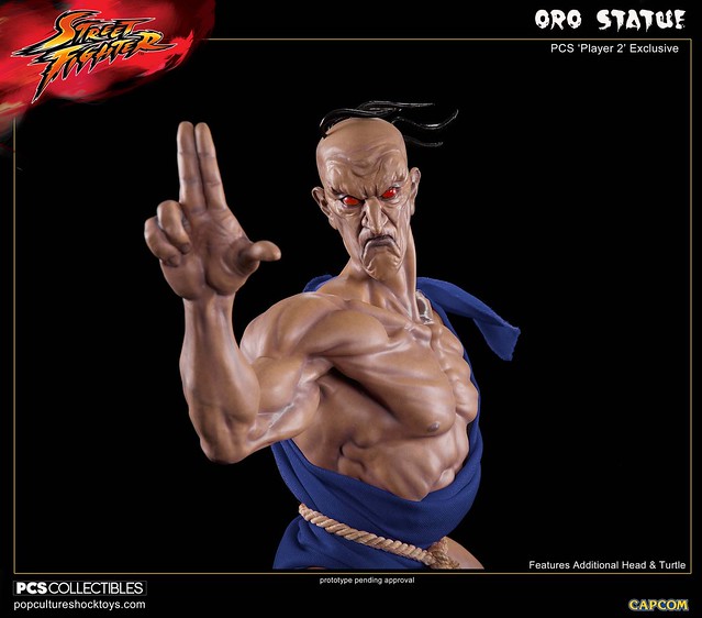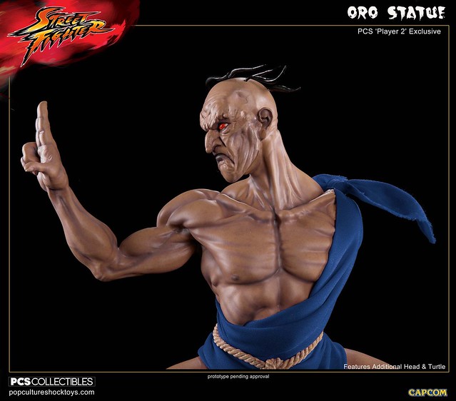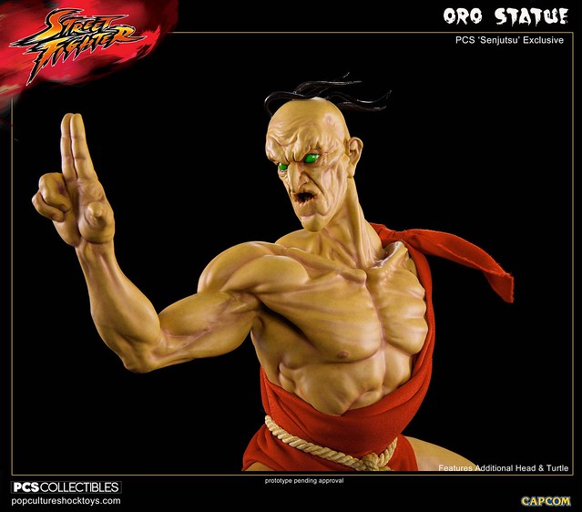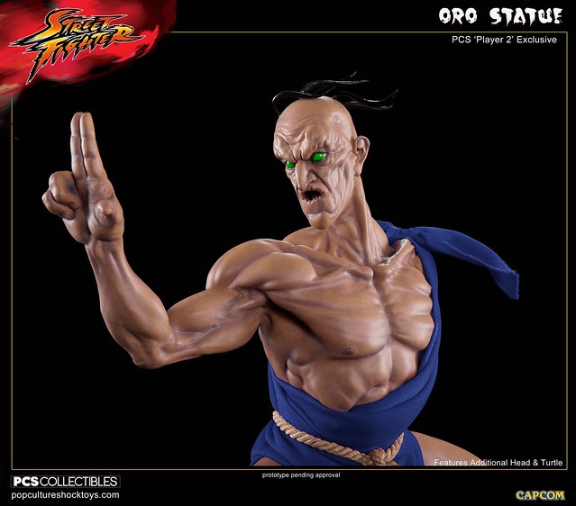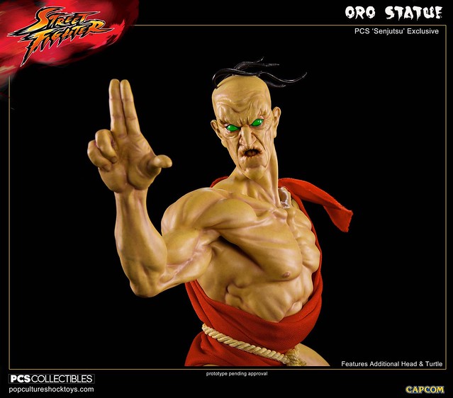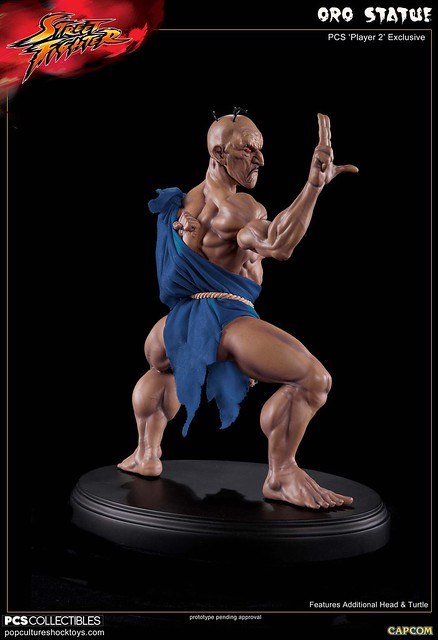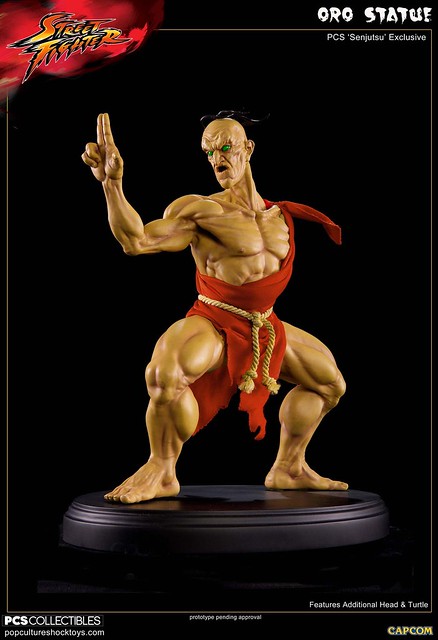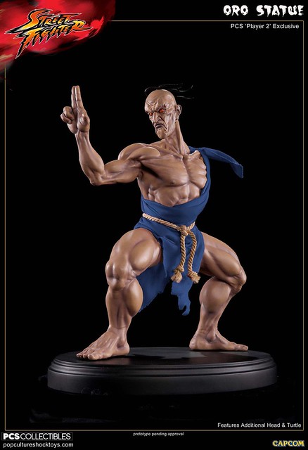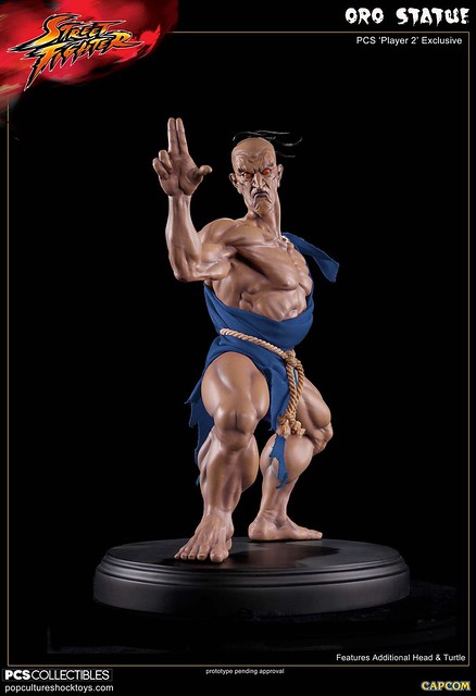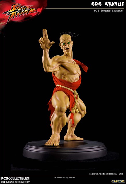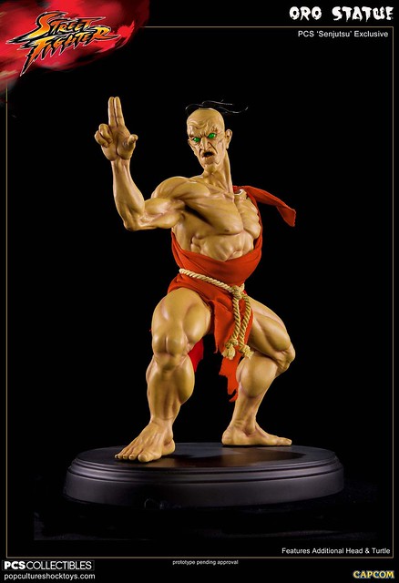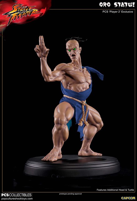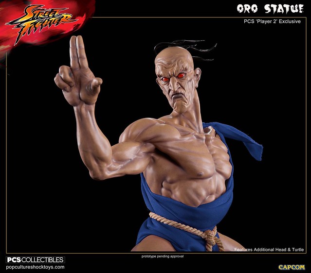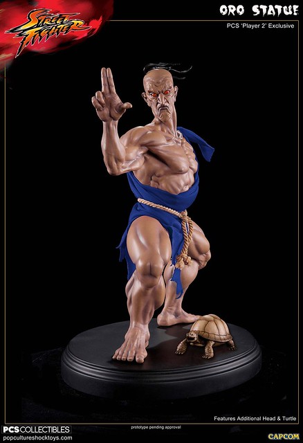 在快打旋風3中首次登場的仙術怪老(ORO),是一位居住在亞馬遜叢林的功夫高手。年齡已經高達140歲,但功夫深不可測,在他眼中豪鬼不過就是個小鬼頭...。因為功力高強,在對決中經常是以單手應戰,只有在使出特定招式時才會解開封應雙手應戰,可說是充滿神秘色彩的性格角色。這次PCS決定推出ORO,就是以1/4比例重現經典的單手應戰架勢。一共推出3種版本,限定版分為1P色(紅)與2P色(藍)兩款,皆附贈兩款可替換的頭雕以及寵物烏龜,預定2月9日於PCS網站開放預購。因為不管是一般版還是限定版,售價都是345美元,所以先搶先贏啊!!!有興趣的玩家不妨參考看看!