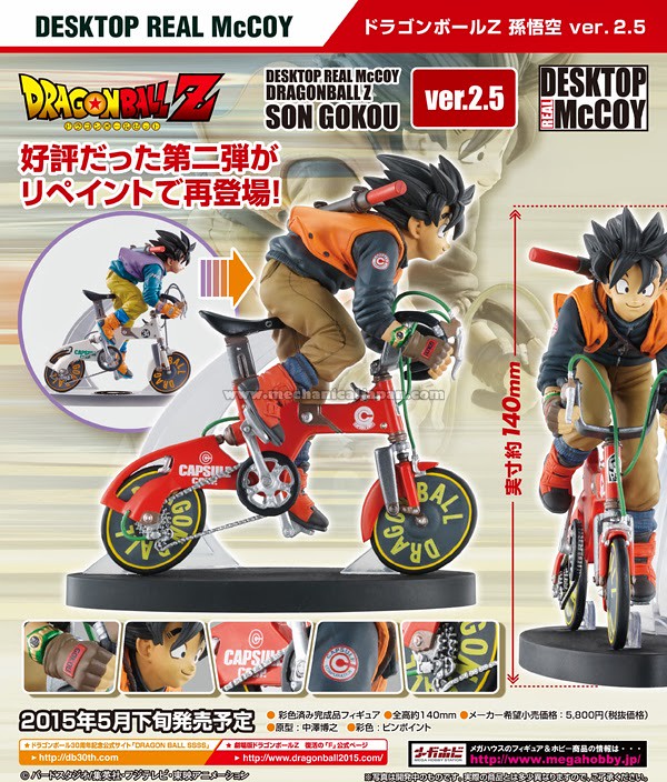 日Megahouse玩具公司推出的DESKTOP REAL McCOY立體造型系列將推出《DRAGONBALL Z》孫悟空ver.2.5(不同配色的2.5版本),雖然之前販售過的版本也重新再次販售過了,不過這款孫悟空騎單車立體化的模樣十分受到喜歡七龍珠玩具人的歡迎,導致廠商將推出不一樣的配色。
