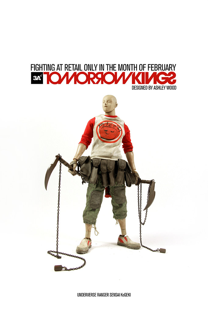香港玩具大廠threeA 公司日前公佈了一張最新「明日帝」(TOMORROW KINGS;TK)作品的官圖,並宣佈將在二月份販售兩款「零售版」的TK 作品。2015 年第一款由設計師Ashley Wood 所設計的這款TK 作品名為:「先制攻擊明日帝」(SENSAI KōGEKI),以上為小編不負責任取名。
