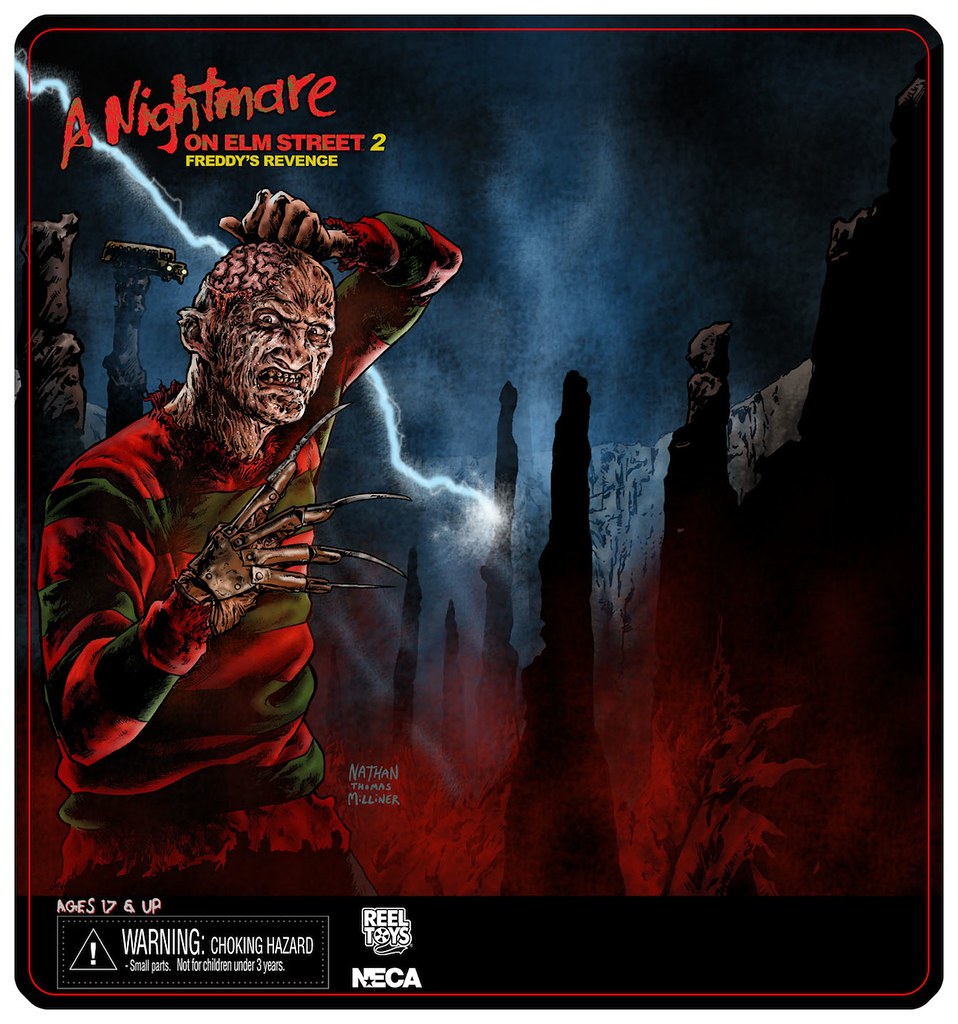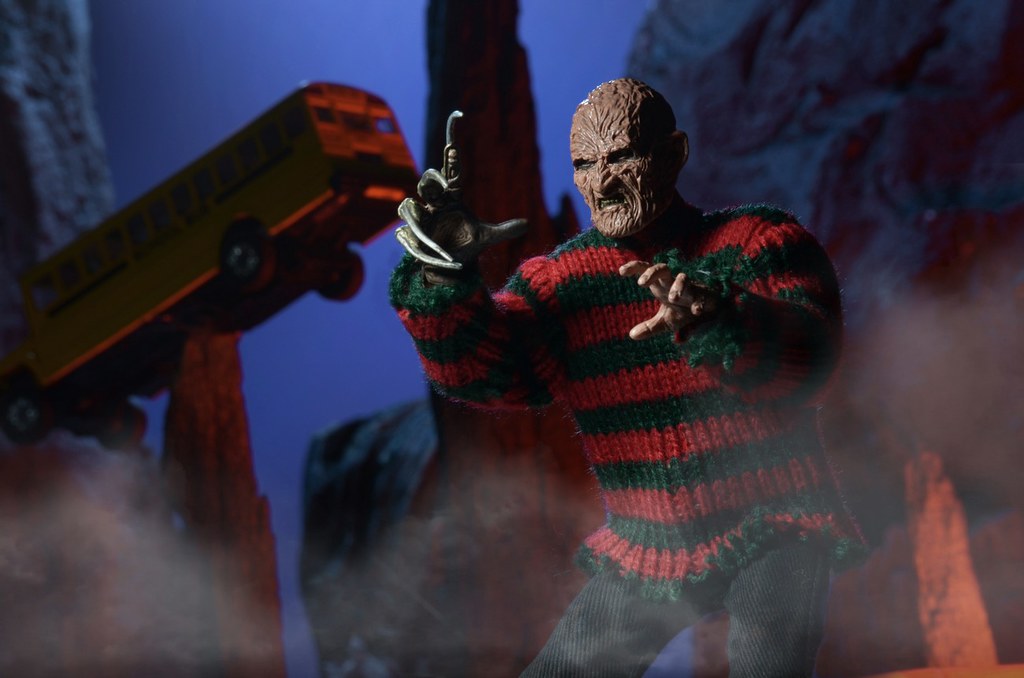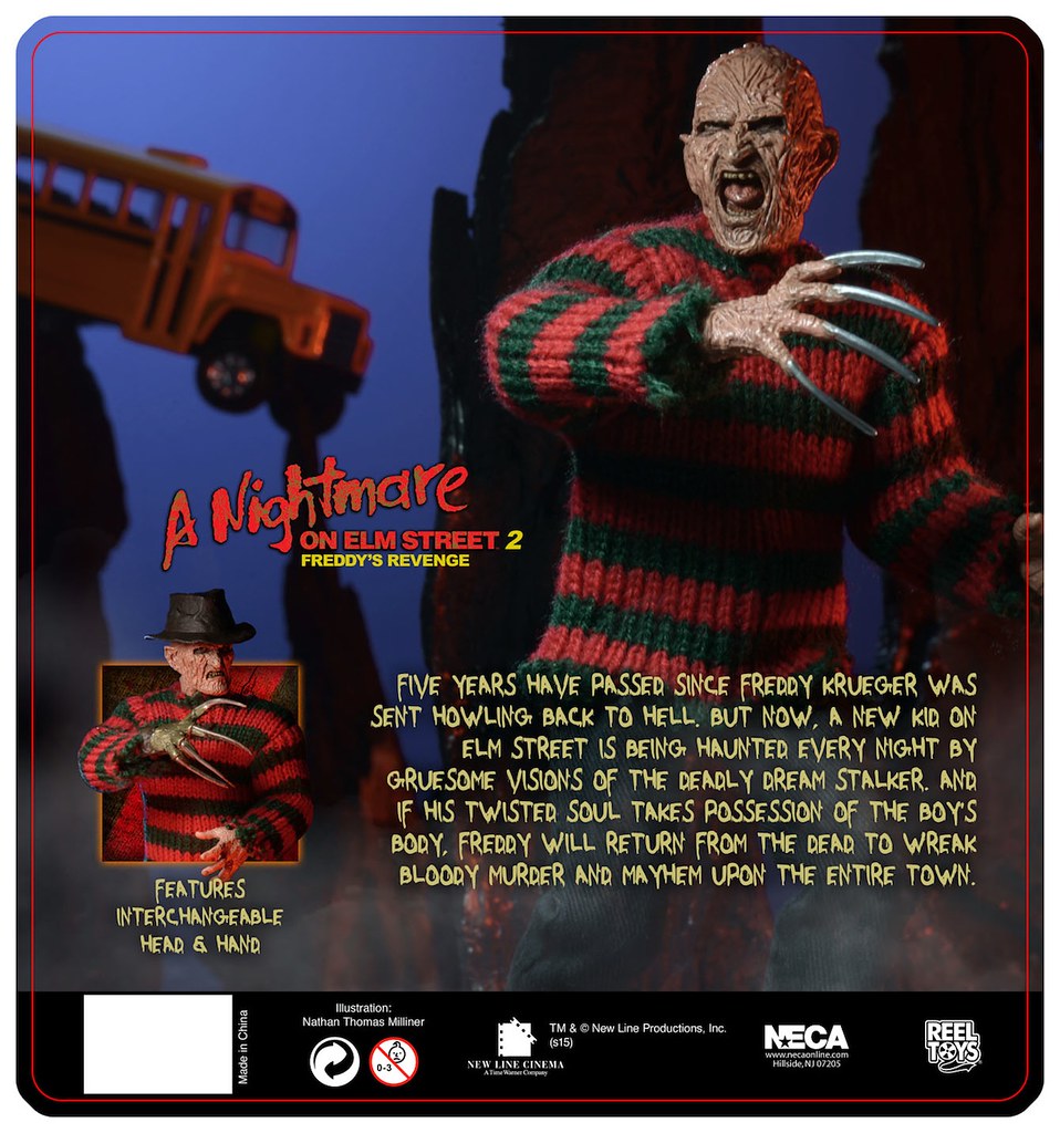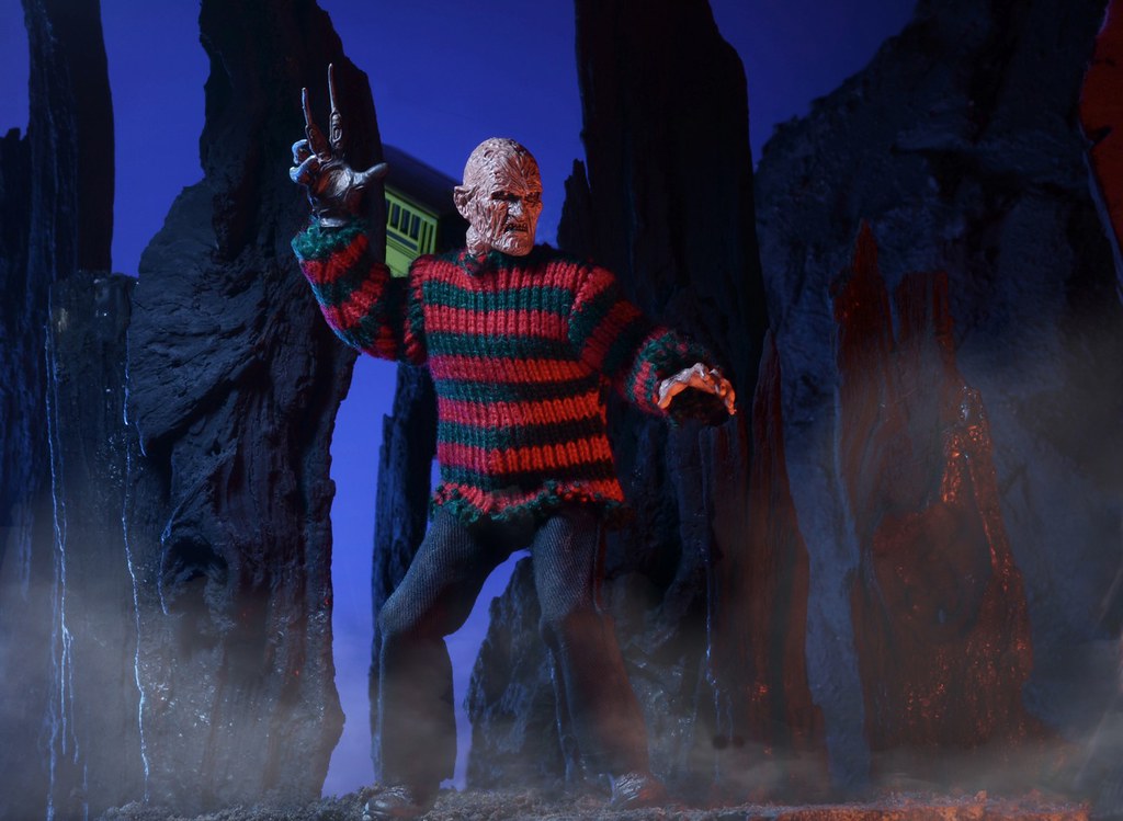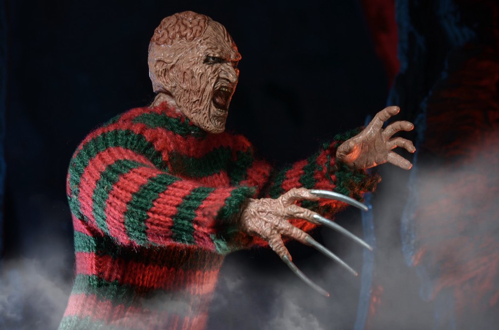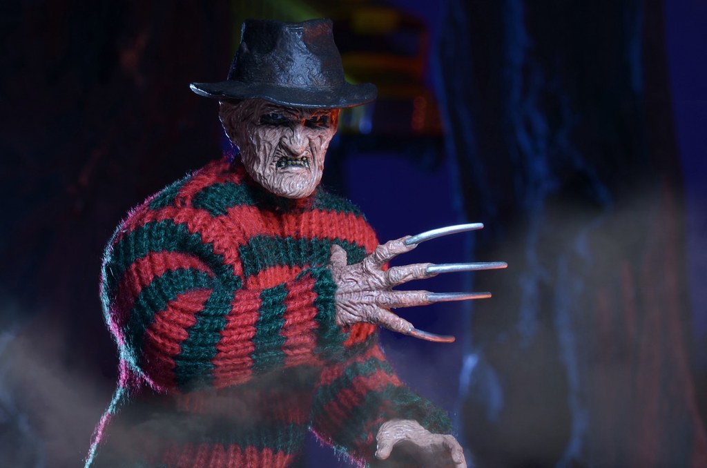 NECA 公司繼日前推出了採用1970 年代的人偶作品風格的「德州電鋸殺人狂」作品之後,再次採用可以穿脫衣服、替換頭雕並高可動的人偶作品來表呈現這款史上最經典的殺人魔角色之一。這款8 吋的人偶作品在頭雕的部分細緻的呈現了「佛萊迪‧庫格」(Freddy Kruege)臉上恐怖的傷疤,更多附上了一顆可替換的戴帽子的佛萊迪頭雕。