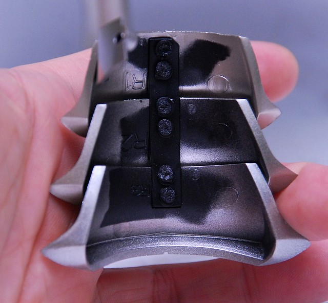 ▼胸甲的後面為軟膠材質,組裝方式一樣使用卡榫去做組裝