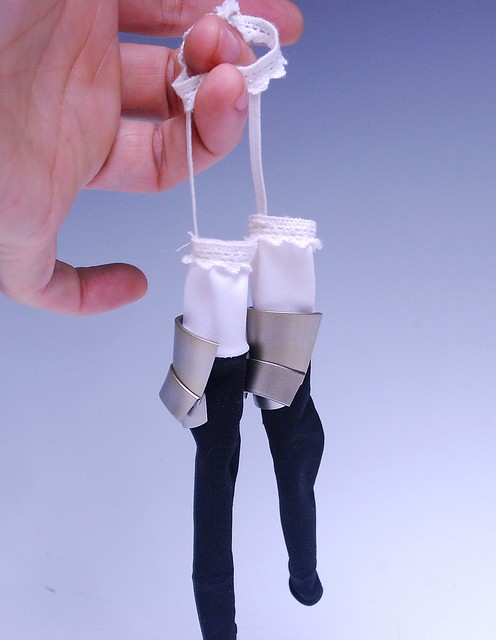 ▼就是這件吊襪XD,這邊要說明一下,吊襪本身細節度很高鬆緊帶很緊,最下面內藏兩個腳的關節,鞋子可以脫掉,穿著吊襪時候要先套最上面的蕾絲然後再把雙腳套進去底部的卡榫